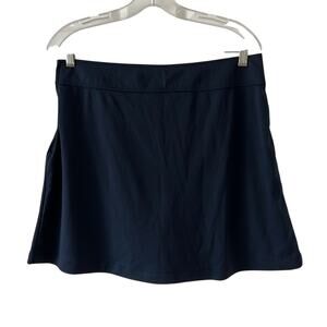 Navy blue polyester knit skort with front pleat, shorts underneath, side zipper