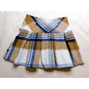 School Girl Pleated Mini Skirt Sz. S Blue Rain Plaid Flannel Y2k Academia