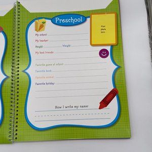 Inside you'll find fill-in prompts, pocket for storing artwork, report cards, photographs, hand-prints and more.