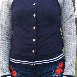 Brand new kids varsity long sleeve, button up jackets, come in navy blue and silver.They come in small, med, large, and extra large too. Made for both boys and girls a like.Made out of polyester.Bundle 2 or more of your likes and save$$$