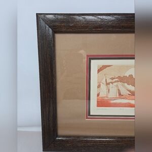 Schooner By Robert Paul 1976 Original Etching Signed By Artist In Wood Frame
