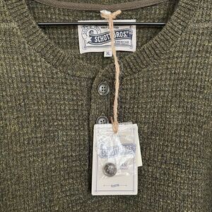 Schott Bros Mens Wool Henley Sweater Size XL Green