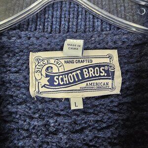 Schott Bros NYC Shawl Collar Cardigan Sweater L Elbow Patches Fisherman Academia