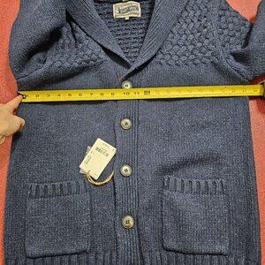 cardigan sweater, shawl collar, Schott Bros, navy sweater, men's fashion, wool blend, cozy knit, elbow patches, large size, winter clothing, classic design, button front, Chunky knit, fisherman, corduroy elbow patches, preppy, dad, grandpa, timeless, winter, academia, old money, outdoor, quiet luxury, cabin