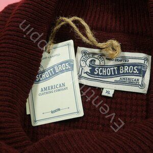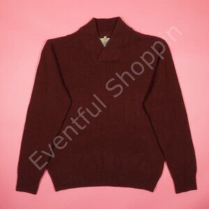 Schott Bros Sweater Mens XL Red Wool Shawl Collar Waffle Knit Burgundy New