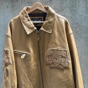 Schott Jacket Y2k Full Zip Leather Embroidered Long Sleeve Tan Size 4XL