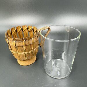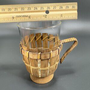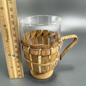Schott Mainz Gen JENA Glass German Marked Cup Mug Clear With Wood Inserts Set 2