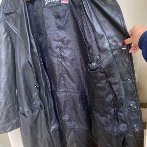 Schott NYC Black Leather Trench Button Up Jacket Sz 42 Made in USA