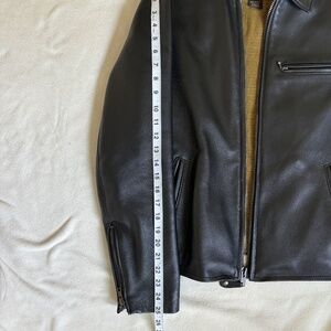 Excellent condition, super soft lambskin Schott NYC style 246 Delivery Jacket. I had a leather tailor add zippers to the cuffs (see photo), and I had it shortened 1".