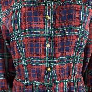 Schrader Petite Plaid Pleated Long Sleeve Button Down Vintage 80’s Dress
