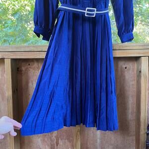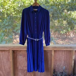 Schrader Sport Custom Casuals 80's Era Women's Vintage Blue Pleated Dress Size M
