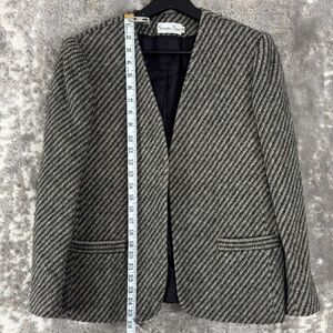 Schrader Sport Womens Size 12 Striped Open Front Blazer Jacket Black Long Sleeve