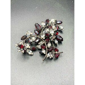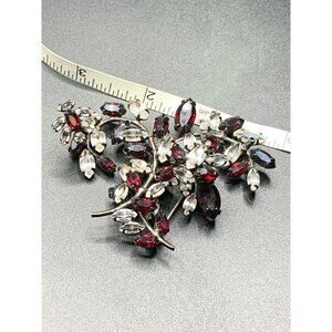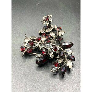 Tags: Unsigned Schreiner, Trembler Brooch,Red and Clear, navette stones, marquise shaped, rhinestones pin, 1950s jewelry, Fancy Pin, Unsigned jewelry, Needs REPAIR, tree branch pin, costume jewelry, clothing accessory
