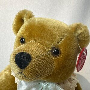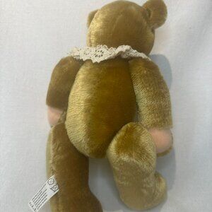 Schuco Jointed Teddy Bear Brown Purring Sound Hang Tag 11" W/ Bow Ruffle