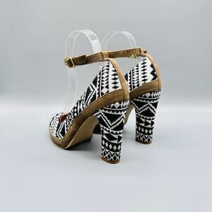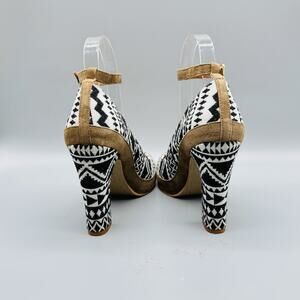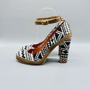 Schuler & Sons Shoes Womens 7.5 Black White Geometric Chunky Heels Anthropologie