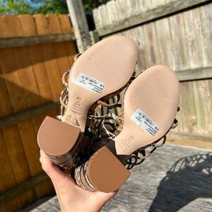 Schultz Julianna Block Sandal in Snake Brush Nude Caramel‎ Size 6.5