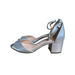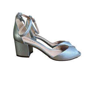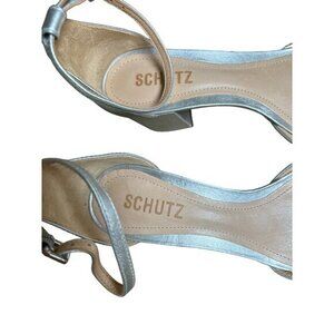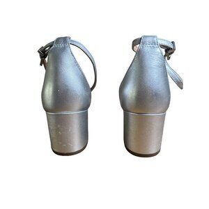 Schultz Roama Block Heel Size 7 B Silver Metallic Leather Ankle Strap NWOB
