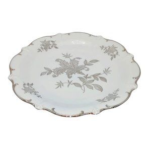 Schumann Arzberg Elegant White Plate with Silver Floral Design 12 Inch Diameter