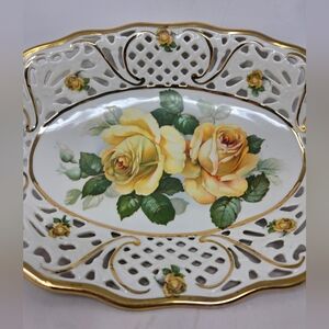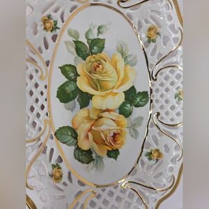 Schumann Bavaria Yellow Rose Serving Decor Dish Porcelain Perforated Edges