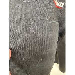 In overall good Pre-Owned Condition, does have a small snag on the front and shows a couple of holes in the material no true holes. All padding feels good. There’s a couple spots where the stitching is starting to come loose.