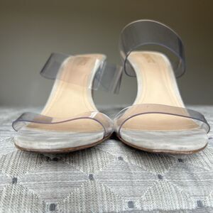 Schutz Ariella Clear Straps Heeled Sandals Beige Leather Inner Sole Women 9.5 B