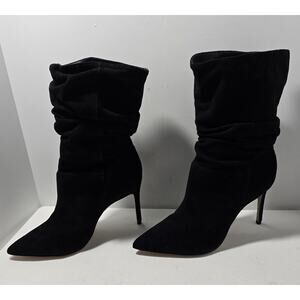 Schutz Ashlee Up Boots Suede Leather Black 9 B Slouchy Stilettos