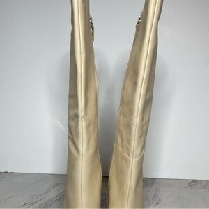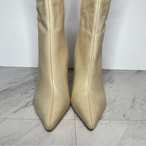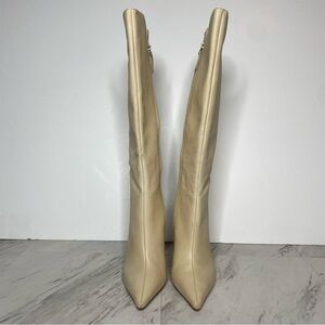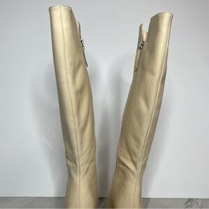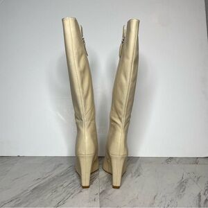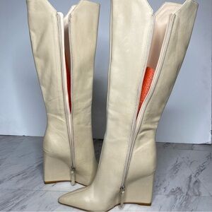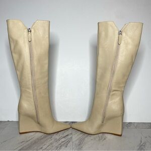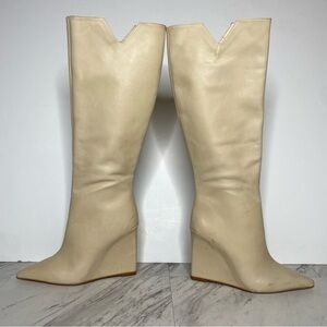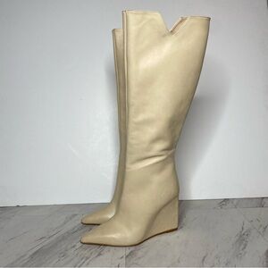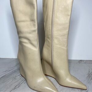 Schutz Asya Up Eggshell Leather Pointy Toe Wedge Tall Boots 6 1/2 B