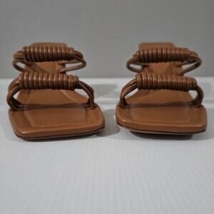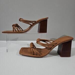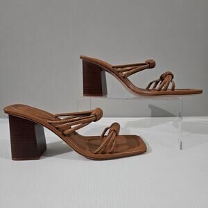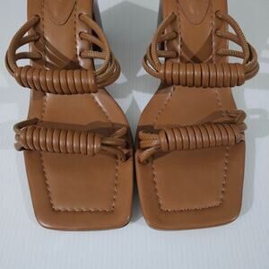 Schutz Binky Sandal Womens 11 Brown Leather Strappy Block Heel Square Open Toe