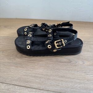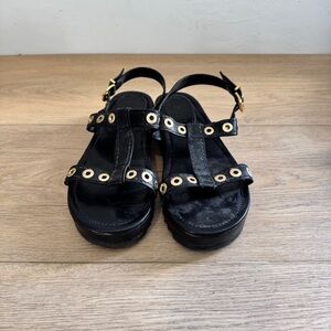 Schutz Black Leather Strappy Grommets Sandals Size 8