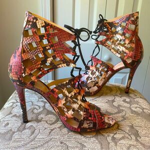 Chic, lace up stilettos, multicolor heels, sexy stilettos, vacation, reptile print stilettos, python stilettos, leather snakeskin stilettos