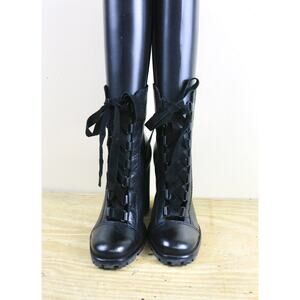 Schutz Boots 11B Black Leather Sofi Tractor Combat Moto Biker Lug Sole High Heel