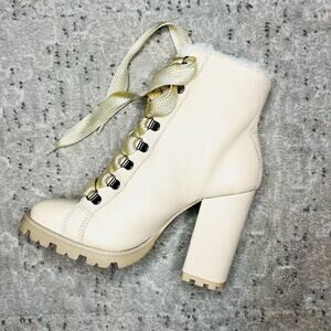 From the Zhara Collection. The Schutz lace-up boots are crafted of leather and feature a block heel and oversized ribbon laces.