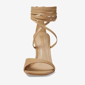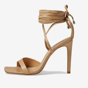 Reach new style heights in the Bryce Leather Sandal. This stiletto-heeled style is crafted from leather with a square-shaped toe and ankle-wrap detailing.