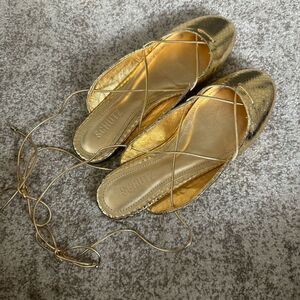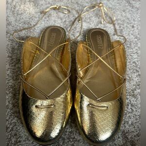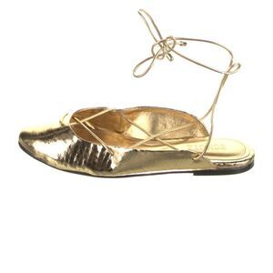 These flats are crafted from the finest leather, featuring a lace-up strap and an opened counter type. The heel is flat, measuring 0.4 inches or 10 mm in height.