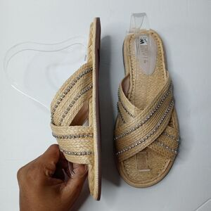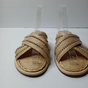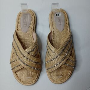 SCHUTZ Carlotta Crystal Embell. Criss Cross Raffia Slides