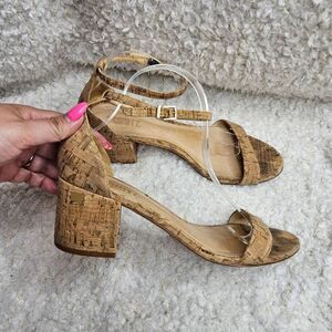 Schutz Chimes Cork And Leather Block Heel Sandals sz 10
