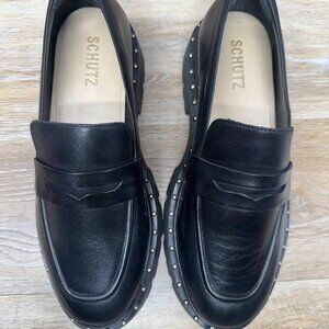 Schutz Christie Black Leather Slip On Studded Loafers Women's Size 8
