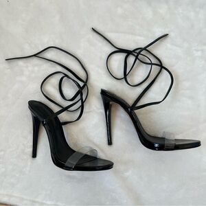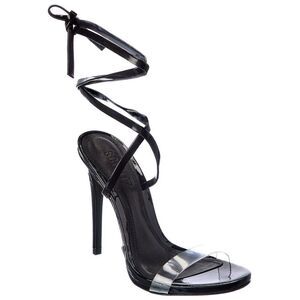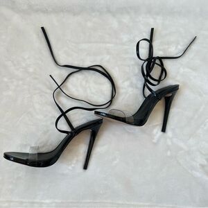 Schutz Cloe Vinyl Square Toe Sandals black clear lace up sexy party cocktail 9.5
