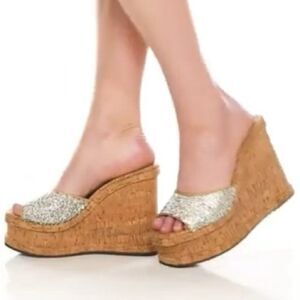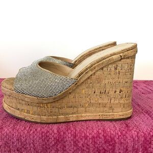 Schutz Dalle Crystal Platform Wedge Sandals Size 10B
