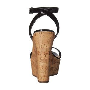 Schutz Eduarda Black Patent Leather Platform Cork Wedge Sandal