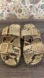 Schutz Elana Snakeskin Print Slide w/Gold Detailing Buckles Cream/Brown 5.5