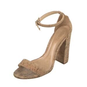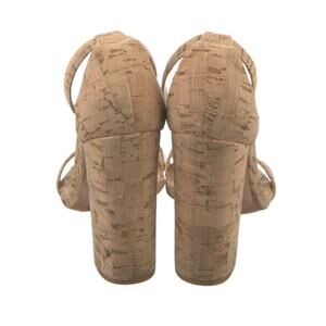 Schutz Enida High Block-Heel Sandals in Tan Cork EUC Size 6.5