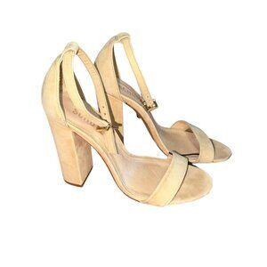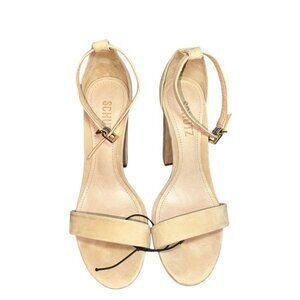 Schutz Enida Nubuck Leather High Block Heel Sandal Lightwood Size 7.5