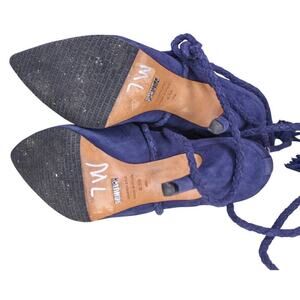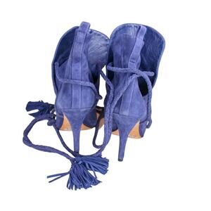 Schutz Fadhila Blue Suede High Heel Ankle Boots Pointed Toe Tassel Tie