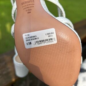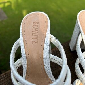 Schutz Felisa Block white scrappy slide Heel