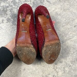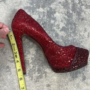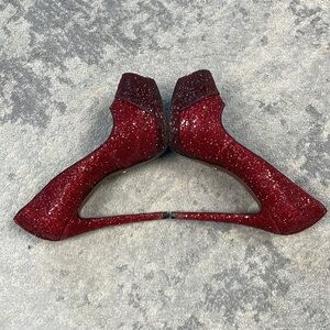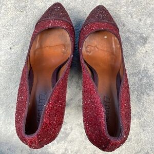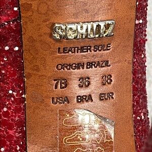 Schutz Fernanda Pump Rouge Red Dark Wine Glitter Sparkle Platform Stiletto 7