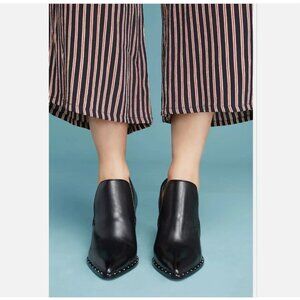 Schutz Fomo Booties Anthropologie Black Leather Block Heel Chunky Witchy Goth