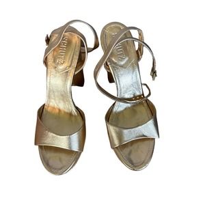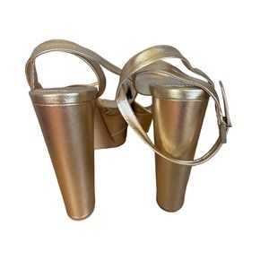 Schutz Gold Metallic Platform Sandal Size 9.5 Kaila Heels Disco Chunky High NEW