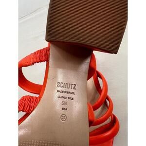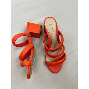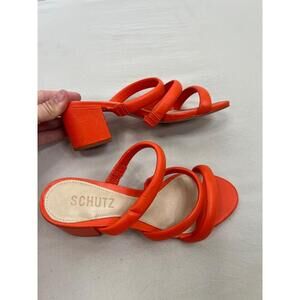 Schutz Heels Womens Size 5B Orange Strappy Sandals Block Heel Open Toe Chic