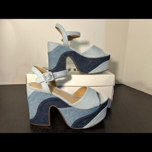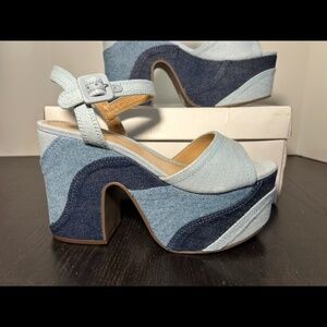 Schutz Isabelle Platform Sandals Shoes Azul Jeans Blue Denim Size 8B